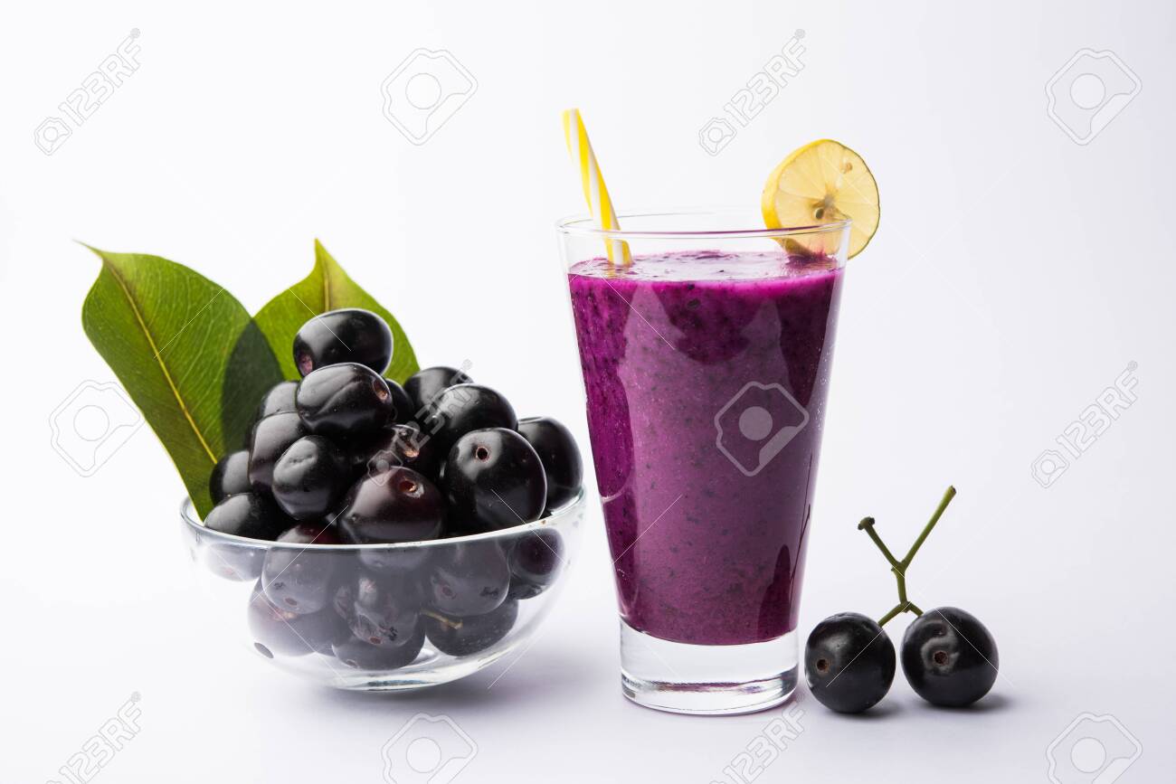 Juice Of Jamun Fruit In A Glass Also Called As Java Plum, Jambolan Plum, Jambhul, Syzygium Cumini Фотография, картинки, изображения и сток-фотография без роялти. Image 125142774