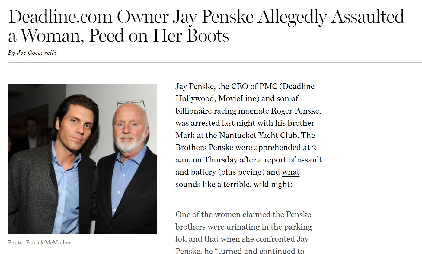ThatUmbrellaGuy on X: "Deadline, Rolling Stone, and other Penske media outlets said "listen and believe" - and especially Amber Heard. So what about Jay Penske allegedly assaulting a woman, and peeing on