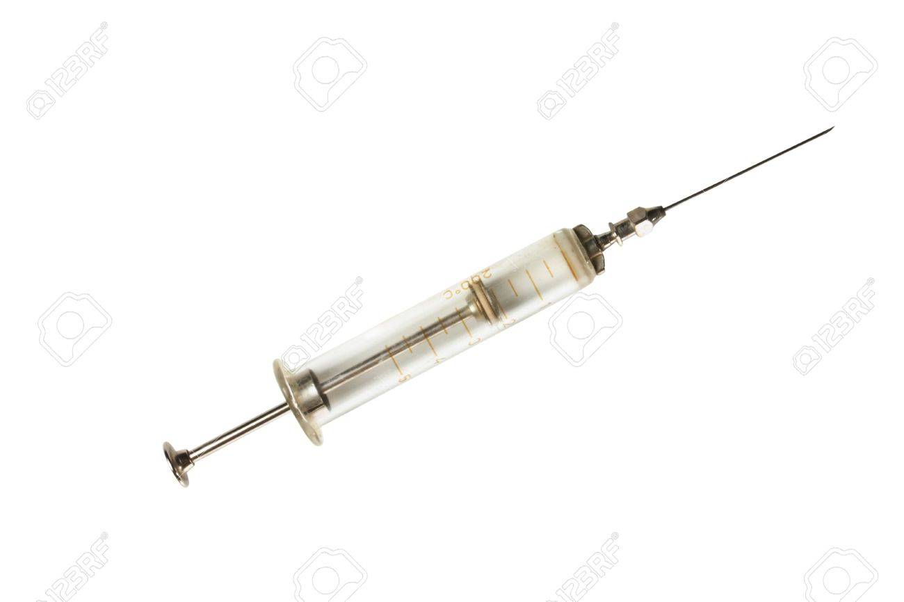 Exprimiendo a Mano Una Jeringa De Vidrio Antigua Con Una Aguja Puntiaguda. Foto de archivo - Imagen de aislado, apego: 235832164