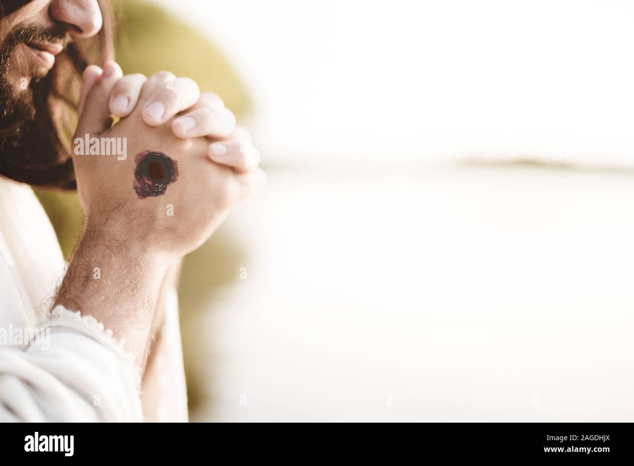 Jesucristo orando con las cicatrices de las uñas sus manos Fotografía de stock - Alamy