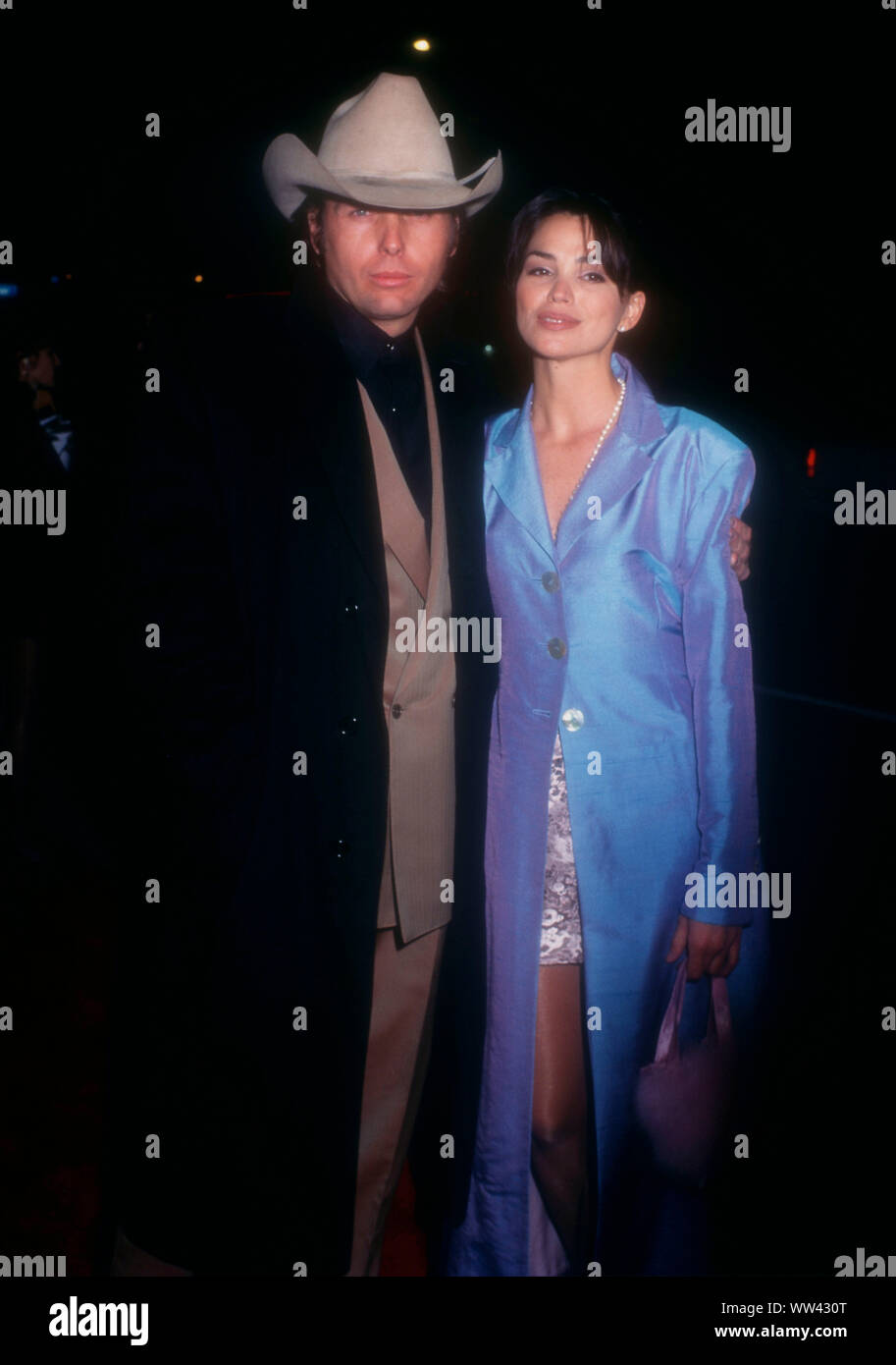 LOS ANGELES, CA - SEPTEMBER 9: (L-R) Actress Karen Duffy and musician Steve Isaacs attend the Ninth Annual MTV Video Music Awards on September 9, 1992 at Pauley Pavilion, UCLA in Westwood,