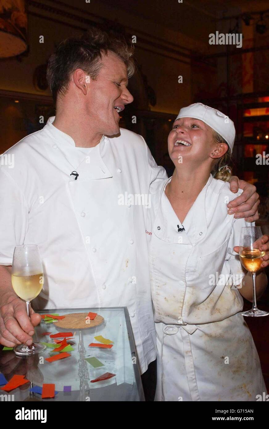 La ganadora de Hell's Kitchen Jennifer Ellison con Gordon Ramsay en su restaurante temporal en Brick Lane, al este de Londres. El espectáculo de cocina de la realidad ITV1 contó con 10