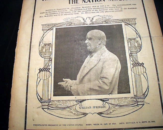 Great President William McKinley Assassination Death w/ Photo 1901 Newspaper | eBay