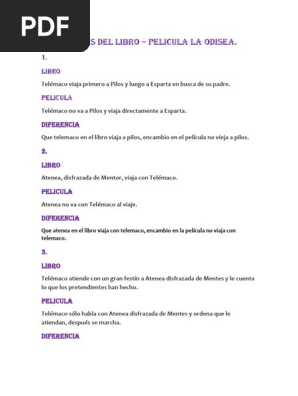 Diferencias clave entre la obra literaria La Odisea y su adaptación cinematográfica | PDF | Odiseo | Literatura de guerra de Troya