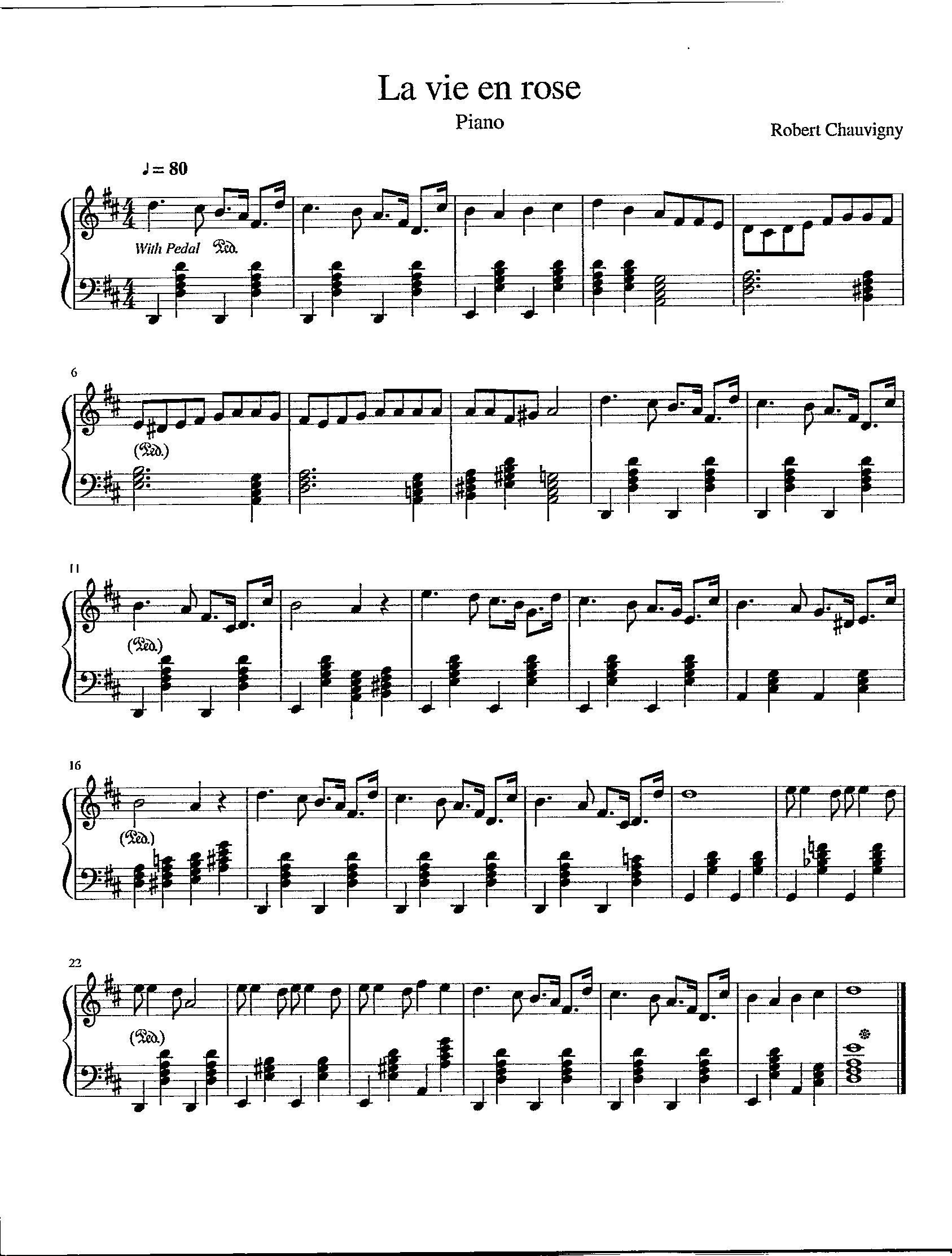 La Vie En Rose Piano Sheet Music Richard Clayderman ...