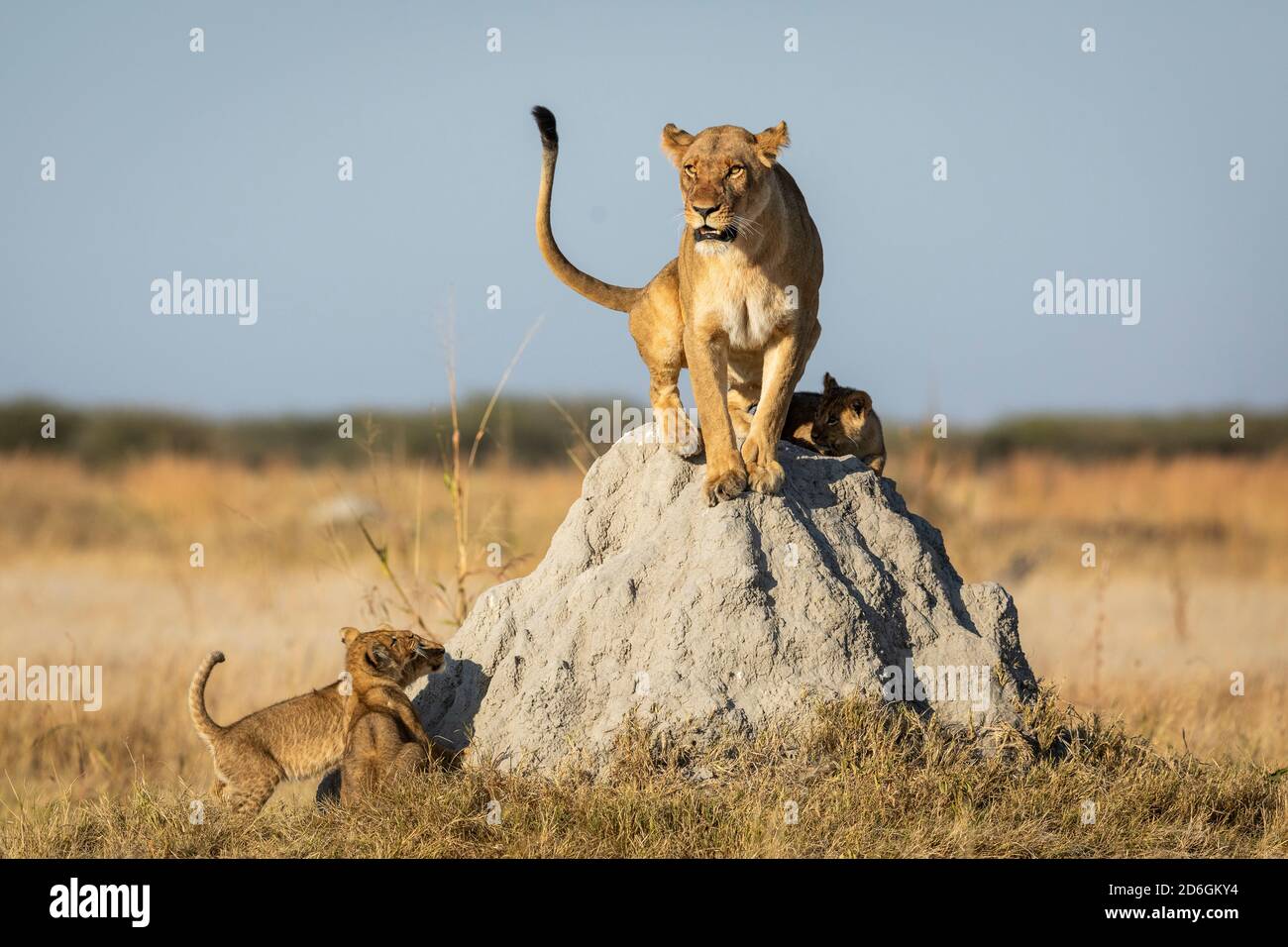 Leona sentada mirando a su cachorro fotografías e imágenes de alta resolución - Alamy