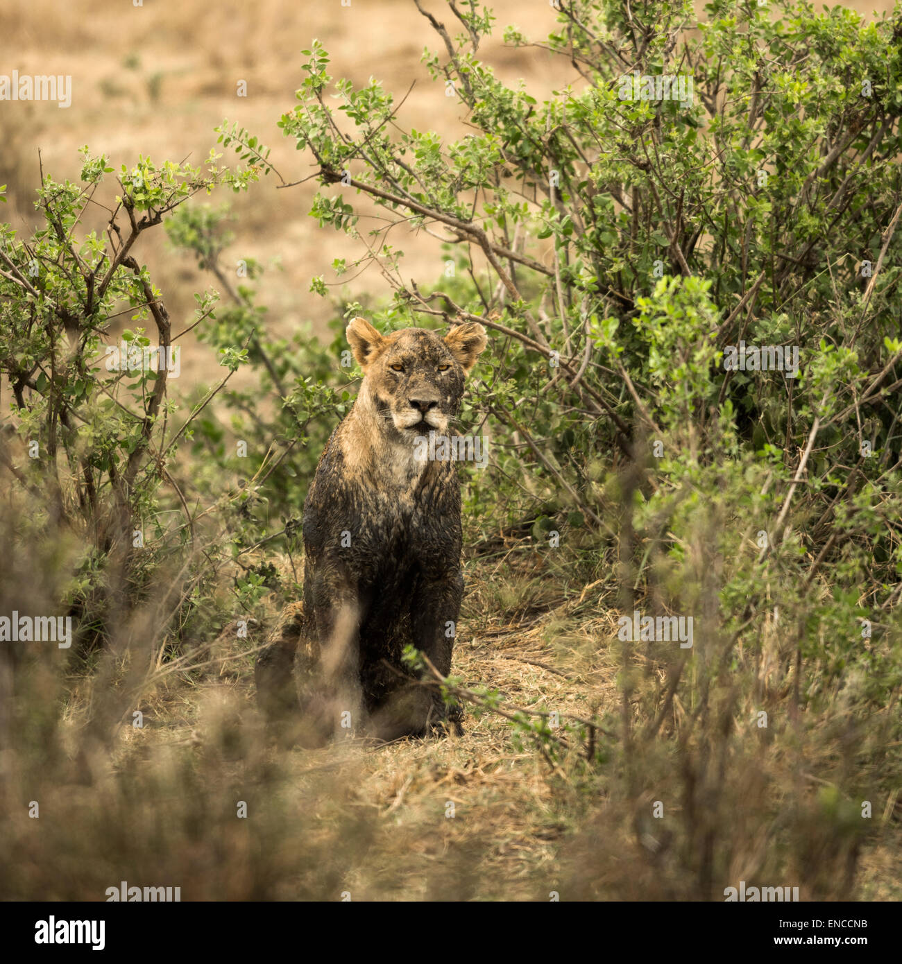 Leona Sentada En El Parque Nacional Tsavo East Imagen de archivo - Imagen de oriente, tomado: 208321567
