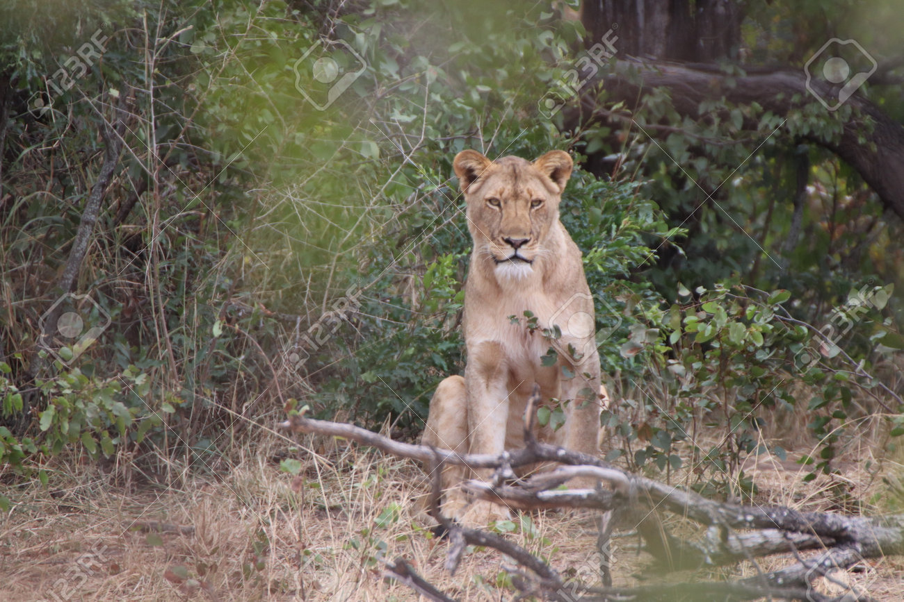 Primer Plano De La Leona Sentada Mirando Al Suelo Imagen de archivo - Imagen de arbusto, gente: 219983233