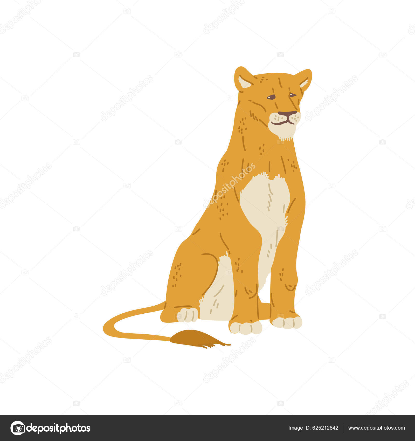 Leona adulta sentada en el suelo africano salvaje gato depredador hembra león dibujos animados lindo animal diseño plano vector ilustración aislado sobre fondo blanco | Vector Premium