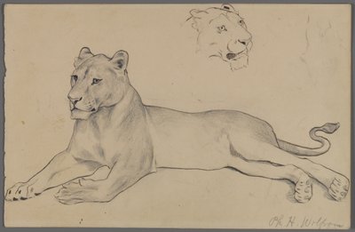 Leona sentada (grafito sobre papel) | Philip H. Wolfrom