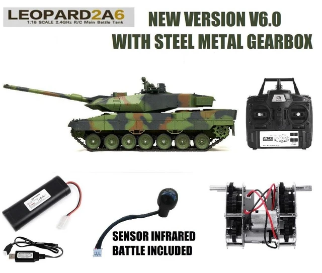 Amazon.com: HMANE RC Tank German Leopard 2A6 Main Battle Tank 1:16, 2.4G Remote Control Military Tank That Shoots with Sound Smoke Shooting Effect - Metal Upgraded Edition : Toys & Games