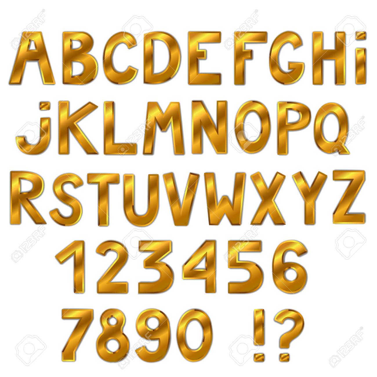 Hermosa Fuente Dorada Aislada Sobre Fondo Blanco. Alfabeto Completo Letras Y Numeros. Ilustración. Ilustraciones svg, vectoriales, clip art vectorizado libre de derechos. Image 84803523