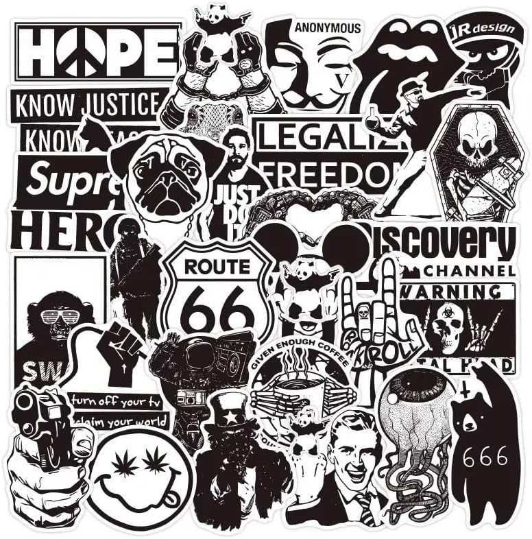 Stickers Blanco Y Negro 50 Calcomanías Stickers Variados Sin Repetir Contra Agua Adhesivo Aesthetic Bonito Diseños Únicos P Electrónicos Laptops Termos Celulares Guitarras Bicicletas Patinetas : Amazon.com.mx: Hogar y Cocina