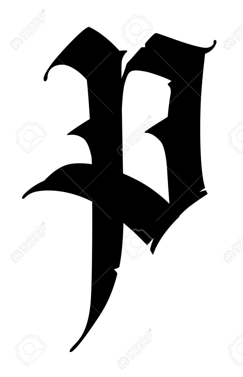 Letra P En Estilo Gótico. Vector. Alfabeto. El Símbolo Está Aislado En Un Fondo Blanco. Caligrafía Y Lettering. Letra Latina Medieval. Logotipo Para La Empresa. Monograma. Fuente Elegante Para Un Tatuaje. Ilustraciones