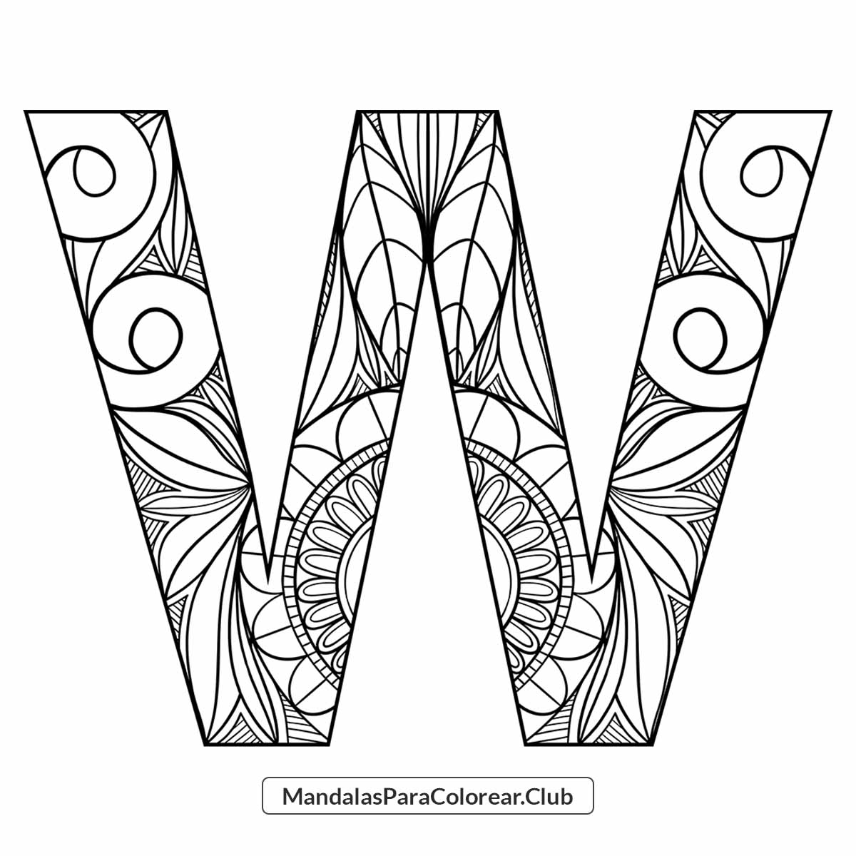 Dibujo de Letra W Zentangle para colorear | Dibujos para colorear imprimir gratis