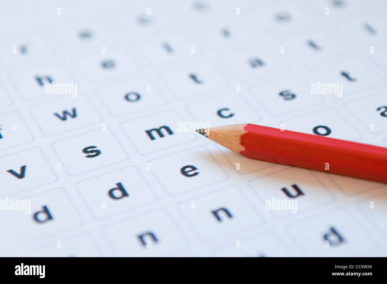 Cerca de una sopa de letras con lápiz rojo Fotografía de stock - Alamy
