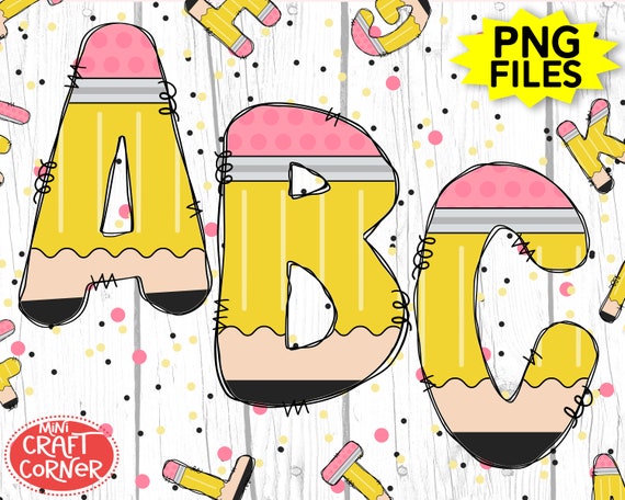 Letras de lápiz, letras de regreso a la escuela, lápiz alfa, letras de burbuja de lápiz, alfabeto de lápiz, lápiz png - Etsy España