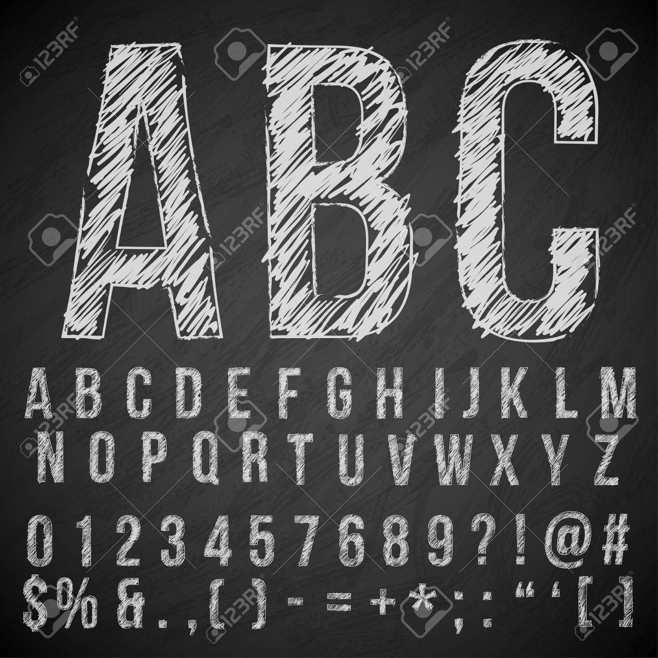 Dibujado A Mano Lápiz O Tiza Esbozó La Fuente: Letras, Números Y Símbolos, Vector Ilustraciones svg, vectoriales, clip art vectorizado libre de derechos. Image 62160351