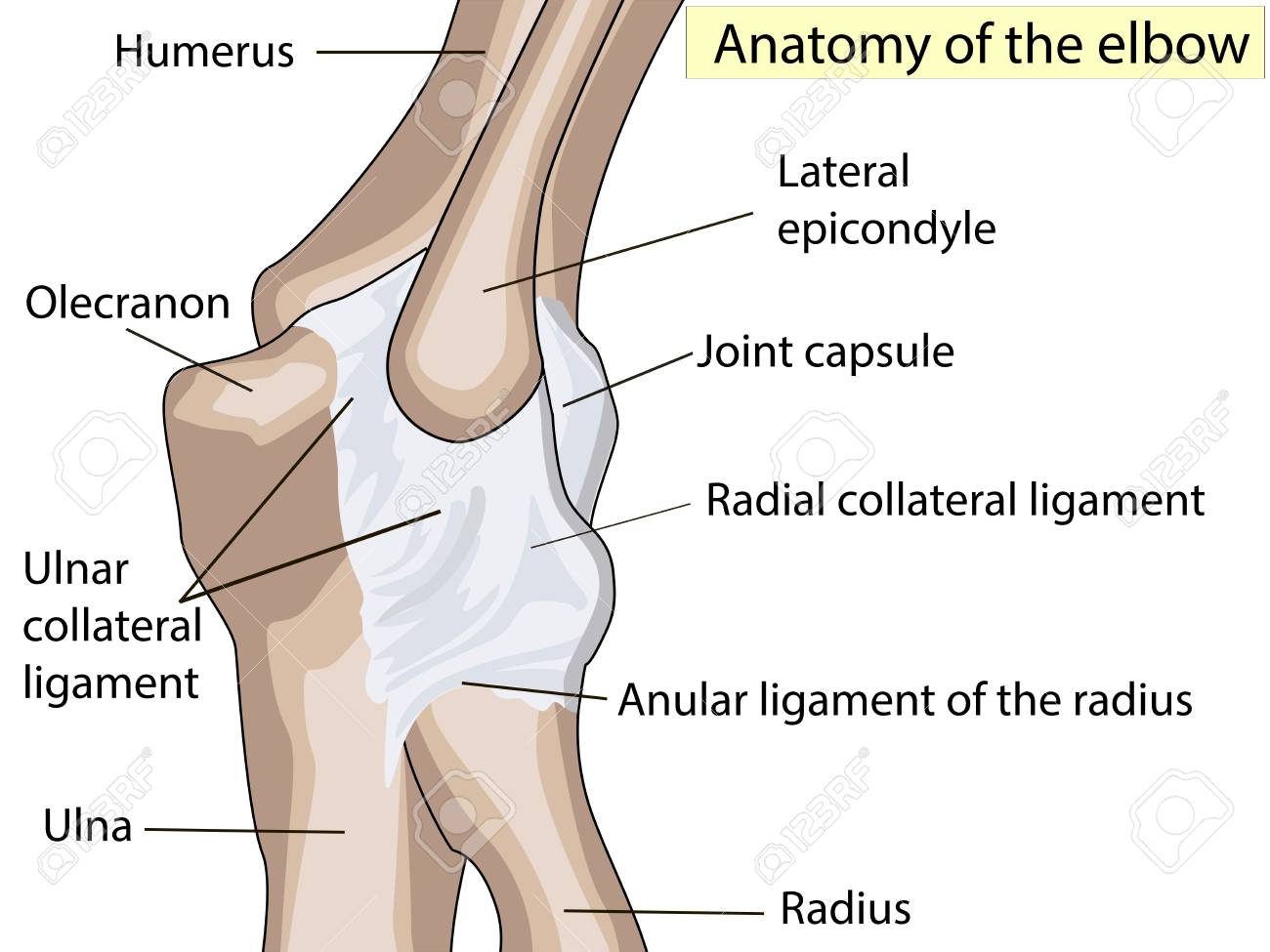 Diseño Anatómico. Ligamento Colateral Posterior Y Radial De La Articulación Del Codo. Fotos, retratos, imágenes y fotografía de archivo libres de derecho. Image 106414700