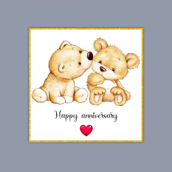 Tarjeta de aniversario para ella, él o ellos. Lindo beso de peluches. Feliz aniversario. Calidad premium. Todos los pedidos enviados dentro de las 24 horas. - Etsy España