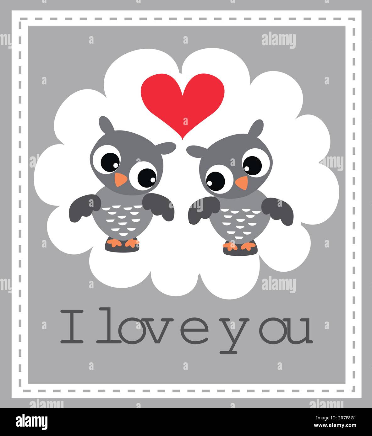 Te amo tarjeta con dos lindos búhos Imagen Vector de stock - Alamy