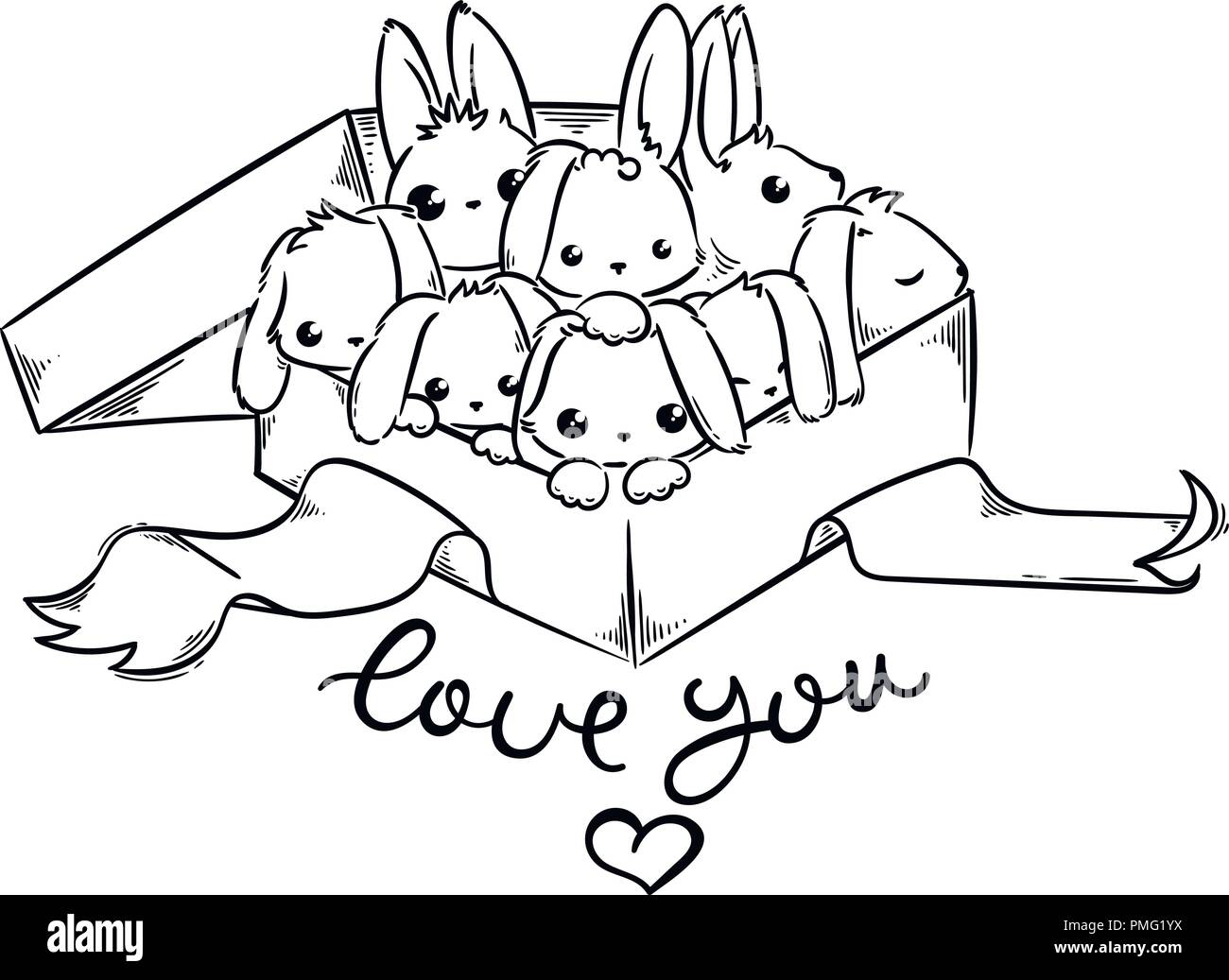 Dé Los Conejitos Lindos Exhaustos Con Tipografía Del ` Del ` Te Amo Ilustración del Vector - Ilustración de lindo, amor: 101386554