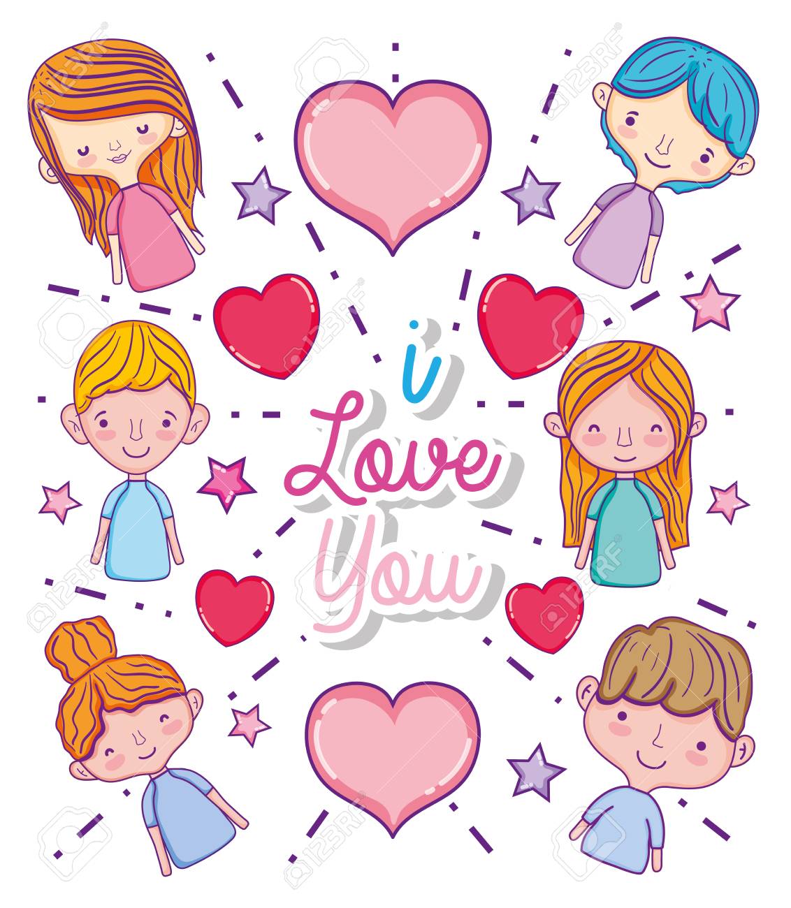 Te Amo Tarjeta Con Diseño Gráfico De Ilustración De Vector De Dibujos Animados De Niños Lindos Ilustraciones svg, vectoriales, clip art vectorizado libre de derechos. Image 105882128