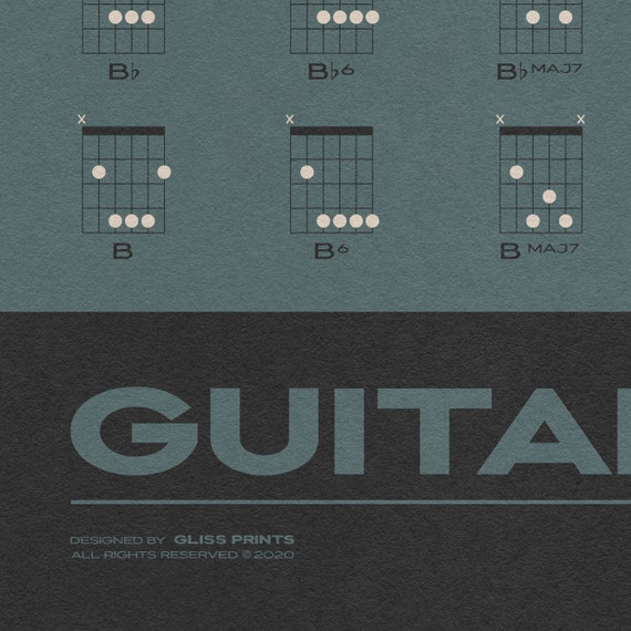 Cartel de la lista de acordes de guitarra / Regalo para guitarrista / Póster de educación musical, azul - Etsy España