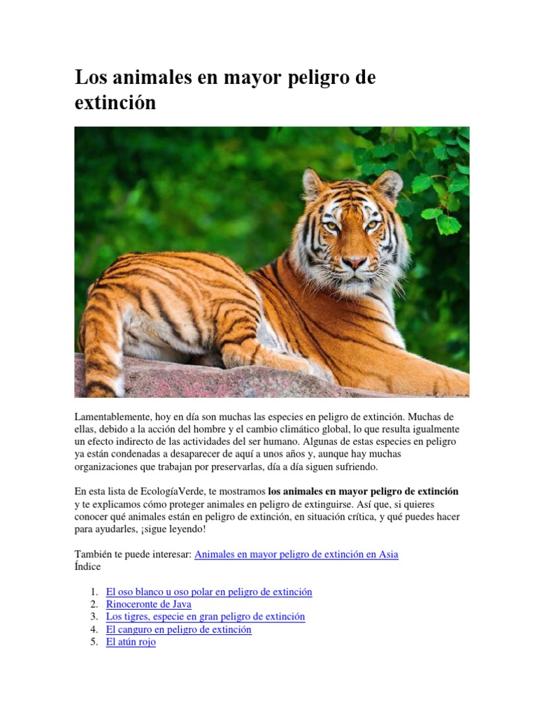 Especies animales en peligro de extinción y sus amenazas | PDF