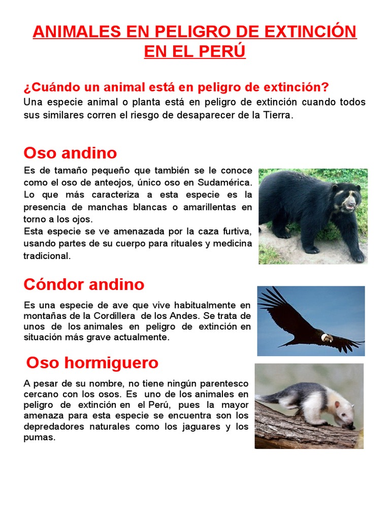 Los animales en peligro de extinción en el Perú y las amenazas que enfrentan | PDF | Osos | Jaguar