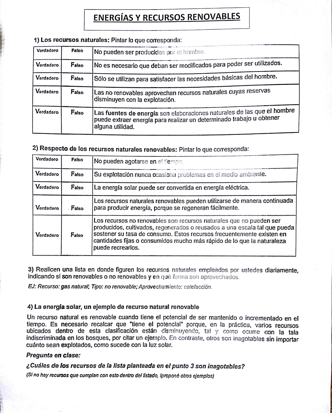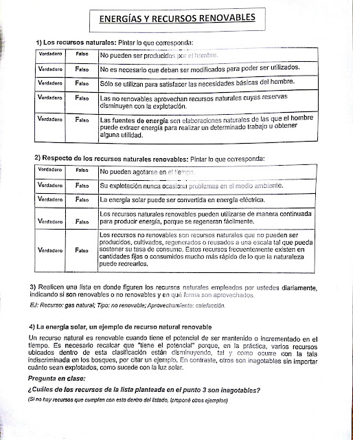 Evaluación | Las fuentes de energía: renovables y no renovables.