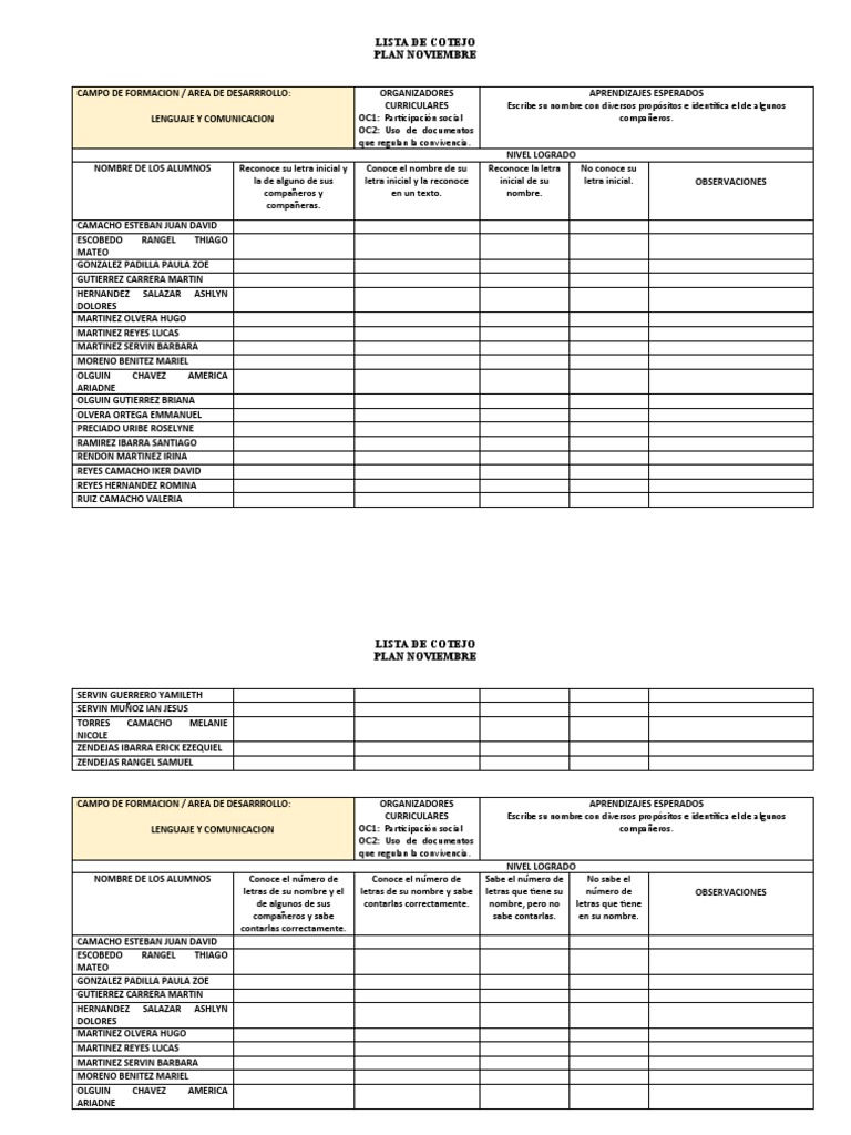 Lista de Cotejo Nombre Propio | PDF