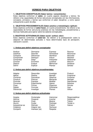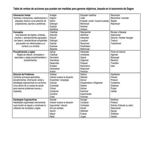 Tabla de verbos de acciones medibles para generar objetivos | PPT