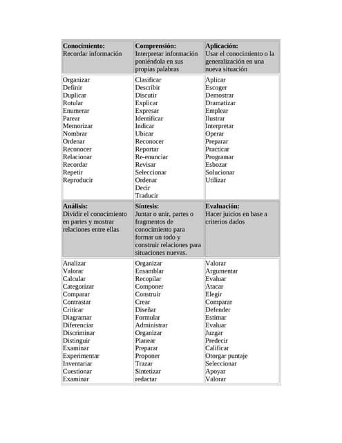 TABLA DE VERBOS DIDACTICOS DE LA TAXONOMIA DE BLOOM 8