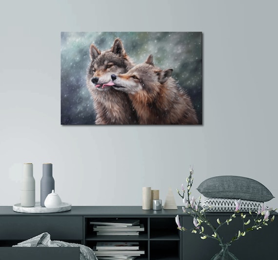 Beso de los lobos, Óleo de lobos, Pareja de lobos, Pintura original de lobos, Regalo para un ser querido, Pintura al óleo, Obra de lienzo - Etsy México