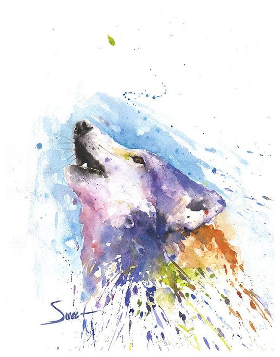 Lobo aullando pintura acuarela animal arte impresión por Eric Sweet - Etsy España