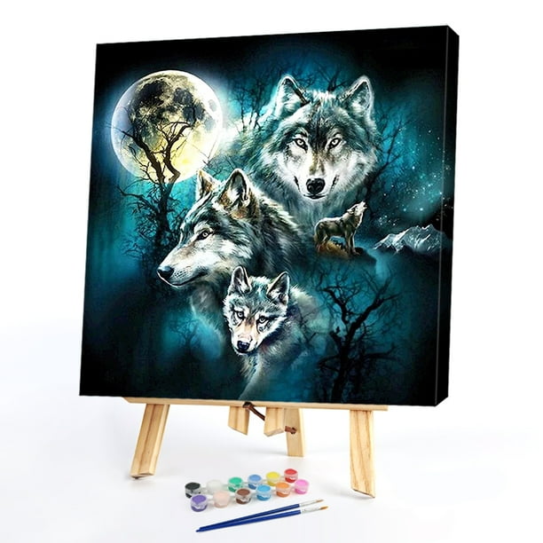 FunnyBeans Oil Paint By Numbers Picture DIY Drawing Painting Night Wolf Kit Artwork - Walmart.ca