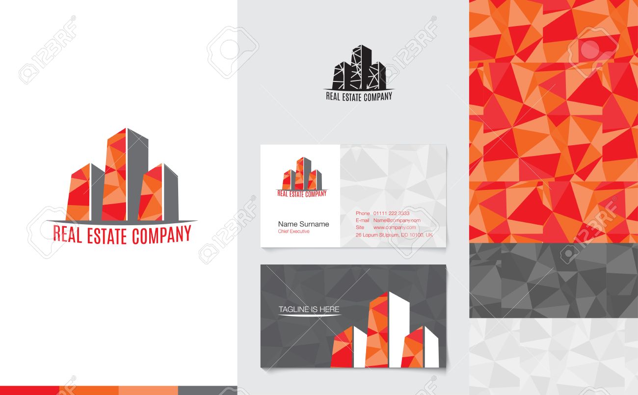 Vector: Bienes Raíces Logo Con Del Nombre Comercial Y El Modelo Corporativo De Estilo Moderno De Baja Poli, El Concepto De Branding. Ilustraciones svg, vectoriales, clip art vectorizado libre de derechos. Image