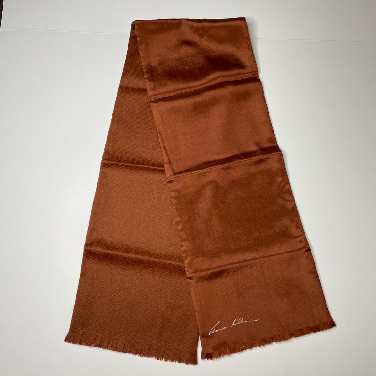 Bloomingdale's Anne Klein 100% Silk Wool Scarf Logo Japan 8 x 48 ...