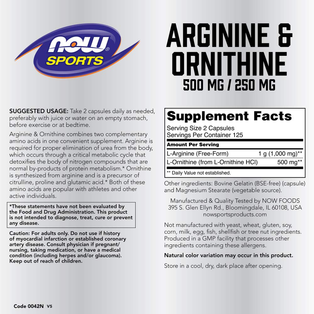 Amazon.com: NOW Nutrición Deportiva, Arginina & Ornitina 500/250 ...