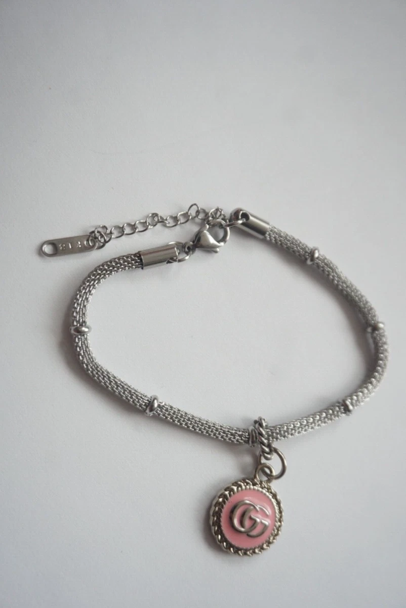 Pulsera GUCCI rosa/plata S 925 logotipo GG 8,9 pulgadas