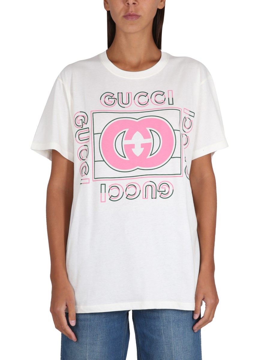 Camiseta de algodón con estampado de logotipo clásico de Gucci ...