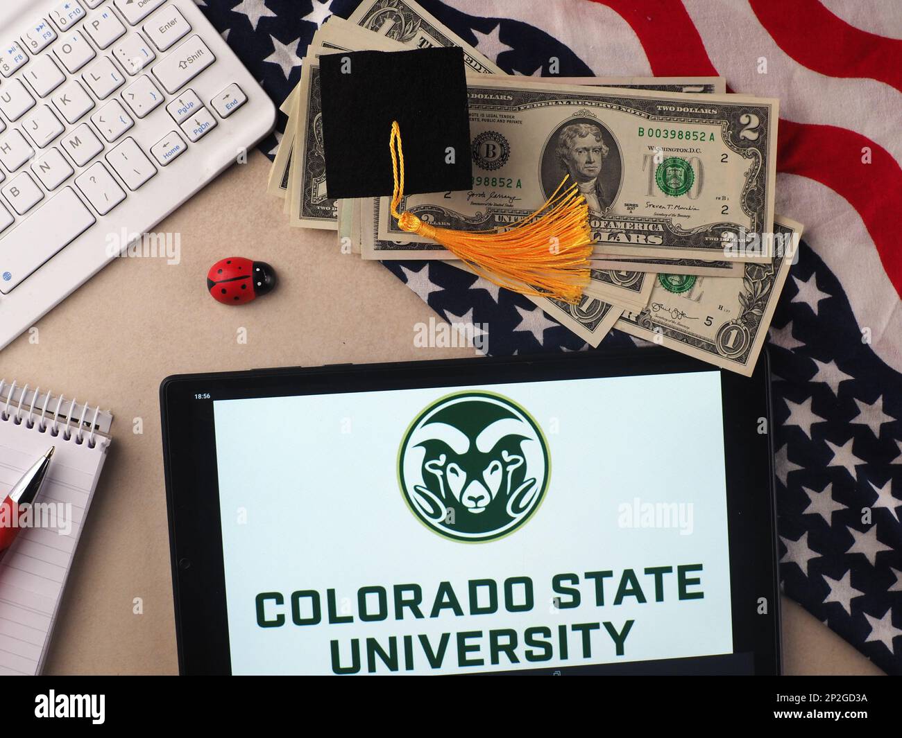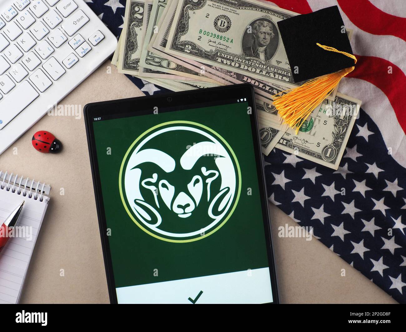 En esta ilustración fotográfica, el logotipo de la Universidad Estatal de Colorado se muestra en una tableta Fotografía de stock - Alamy