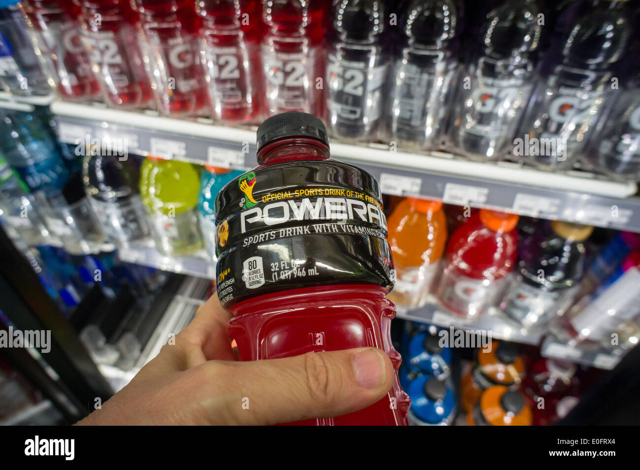 Powerade bebidas deportivas de marca de Coca-Cola en un supermercado el enfriador en Nueva York Fotografía de stock - Alamy