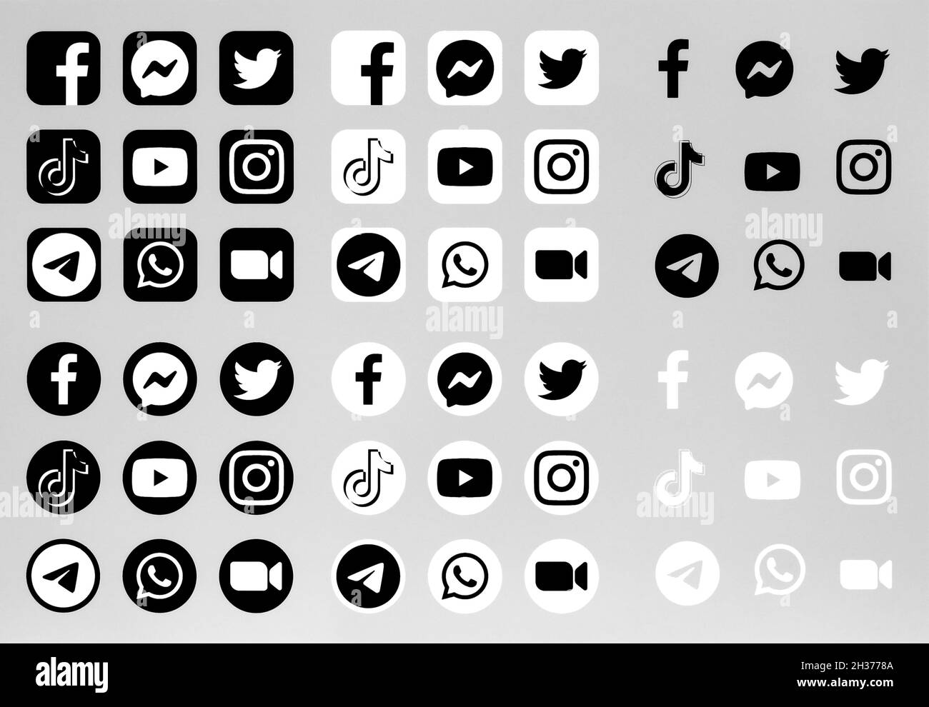 Facebook, Instagram, Twitter: Colección De Logotipos De Redes Sociales Populares En Estilo Blanco Y Negro. Vector Editorial. Kiev, Ucrania - 26 De Noviembre De 2019 Fotos, retratos, imágenes y fotografía de archivo