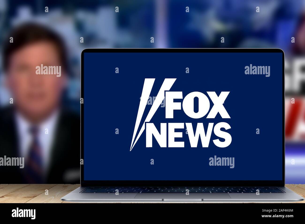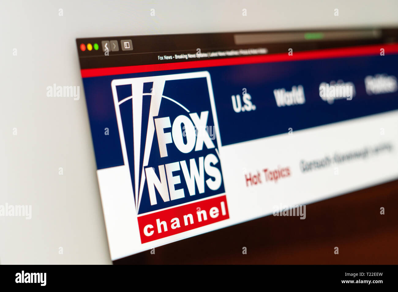 Portada del sitio web de Fox News. Cerca del logotipo del canal Fox News. Сan se utiliza como un ejemplo para otros medios de noticias Fotografía de stock - Alamy