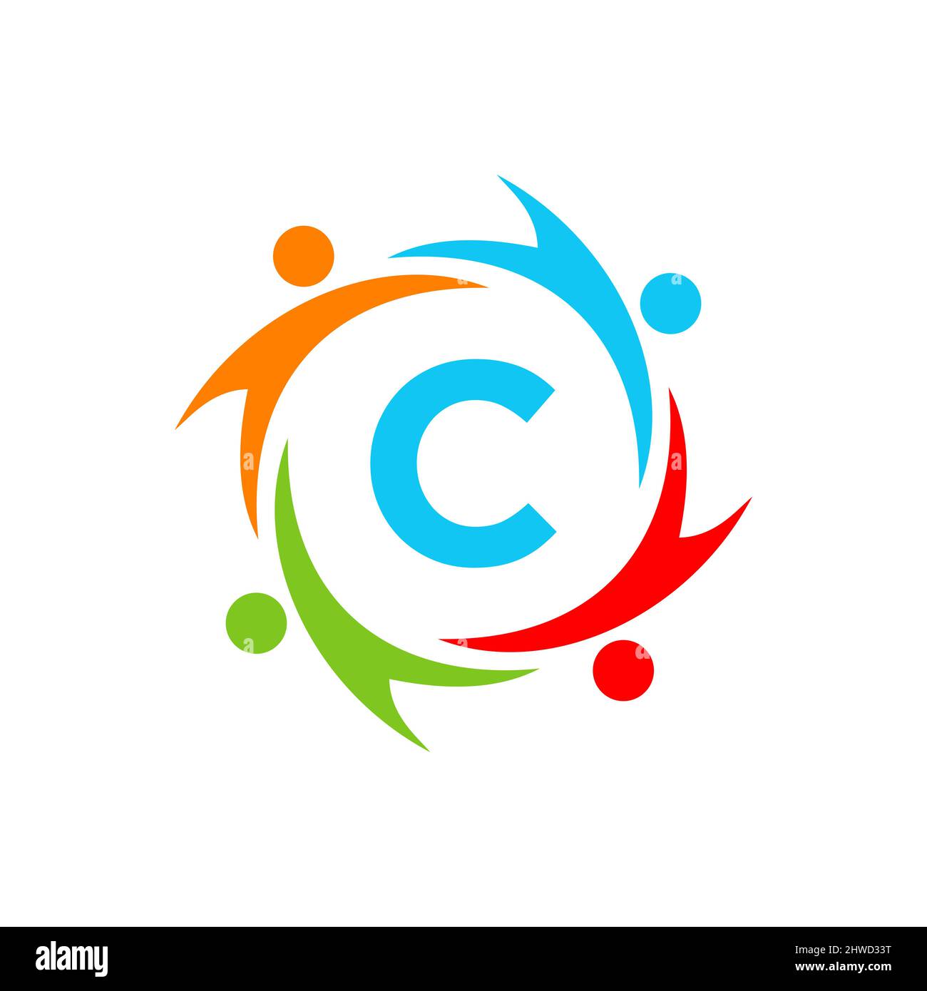 Plantilla del logotipo de Carity en la letra C, firma inicial del logotipo humano de Unity Foundation. Unity Team Work Logo Design con plantilla de carta C Imagen Vector de stock -