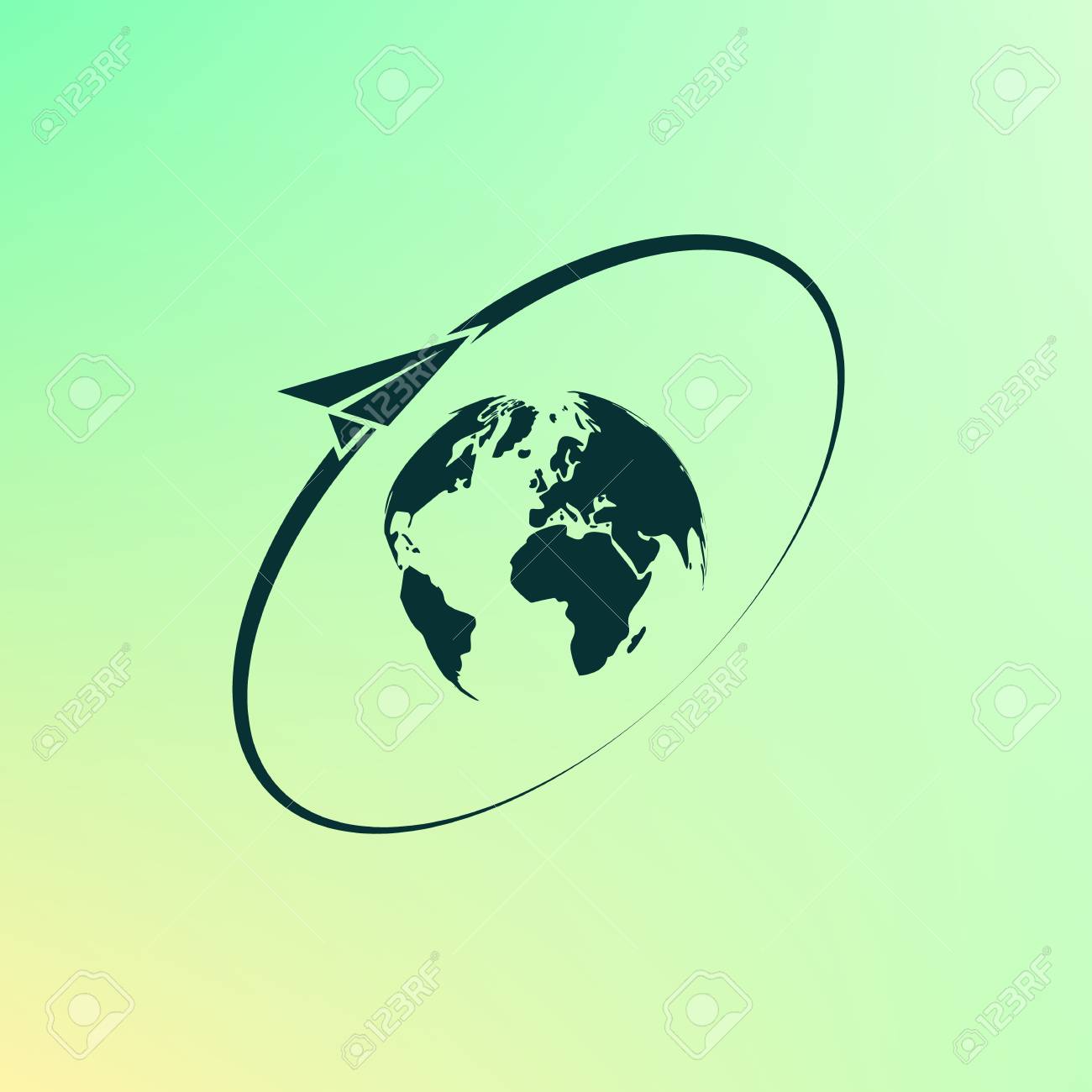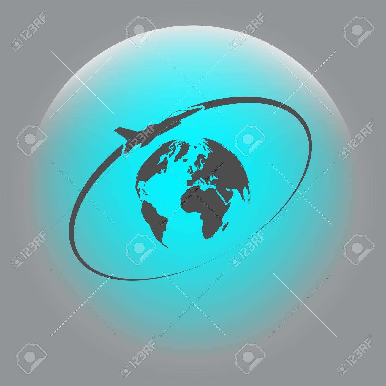 Avión Volar Alrededor Del Planeta Tierra. Logo. Ilustraciones svg, vectoriales, clip art vectorizado libre de derechos. Image 64775647