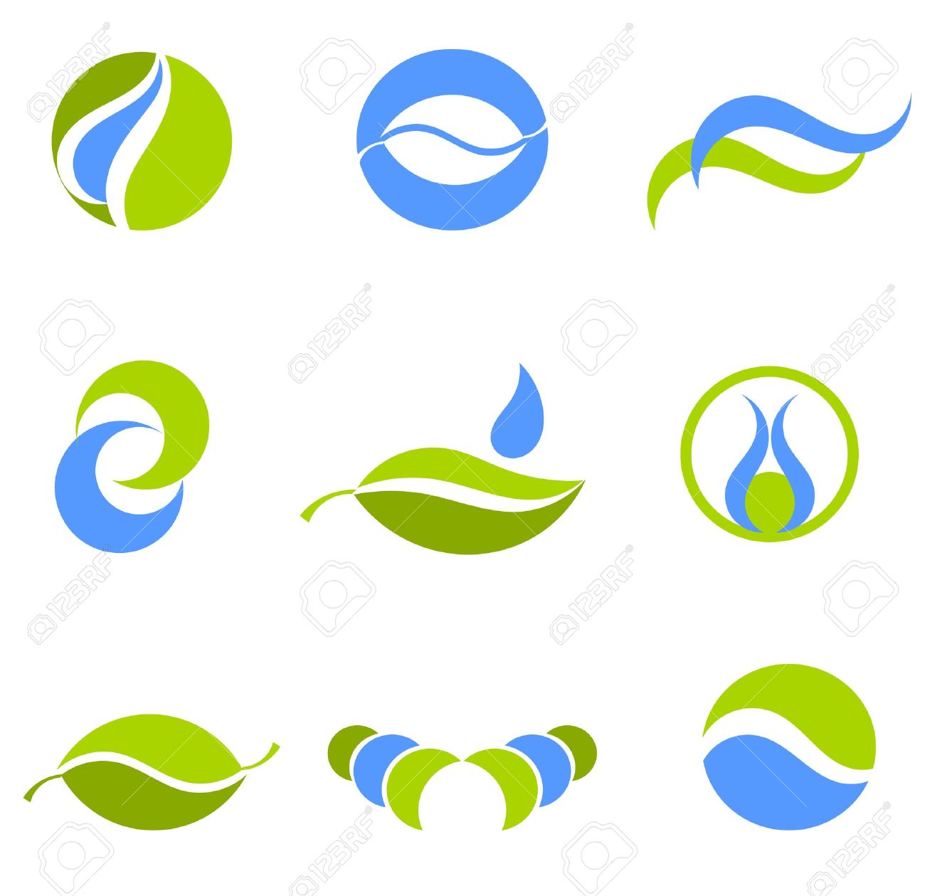 Símbolos Azules Y Verdes Agua Y La Tierra O Logotipos Ilustraciones svg, vectoriales, clip art vectorizado libre de derechos. Image 10045655