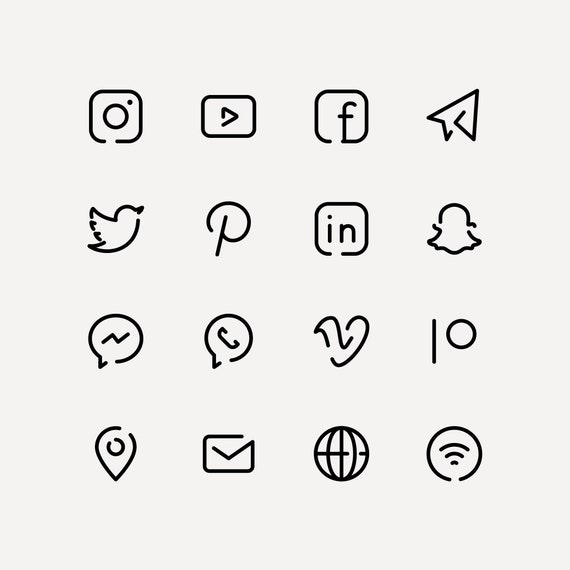Iconos negros de redes sociales. Logotipos minimalistas de redes sociales. Iconos de líneas simples: Instagram, YouTube, Facebook, Pintrest, Patreon, etc. de Senti - Etsy España